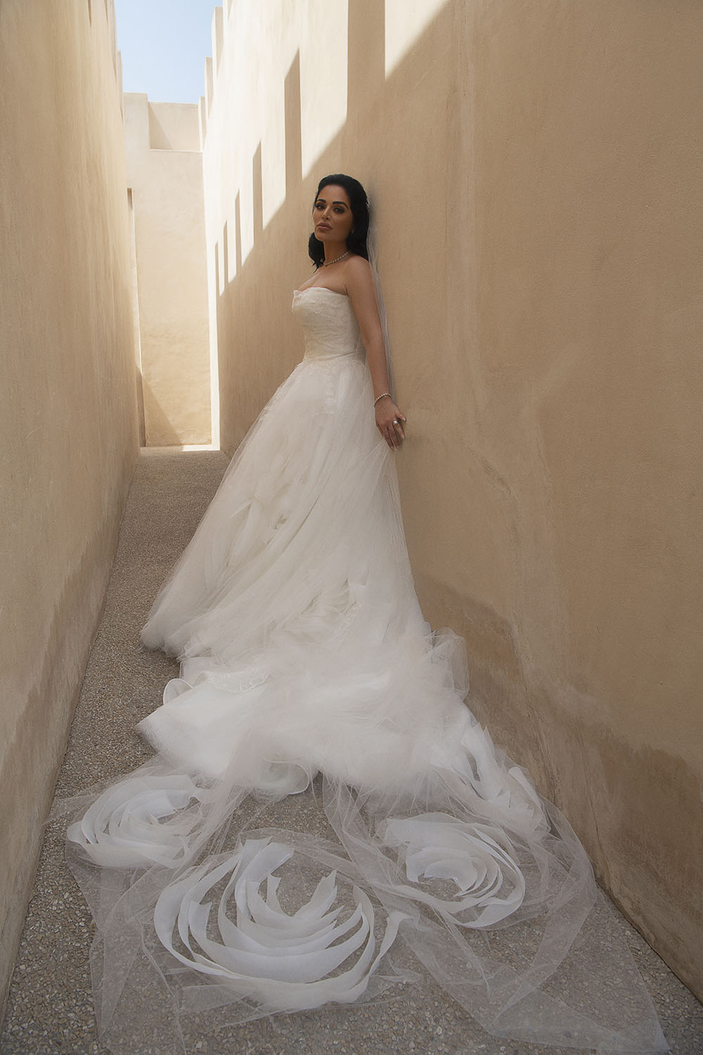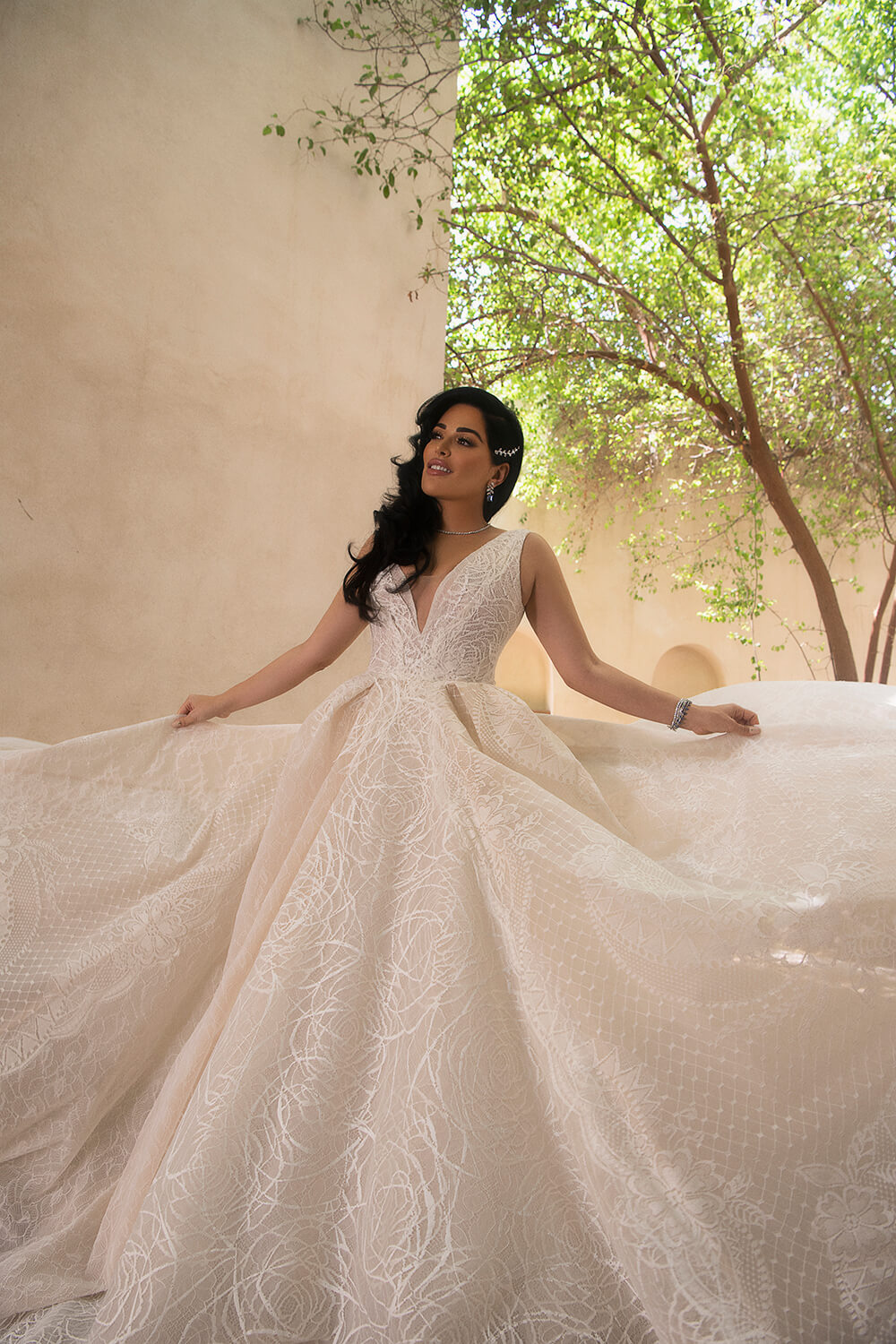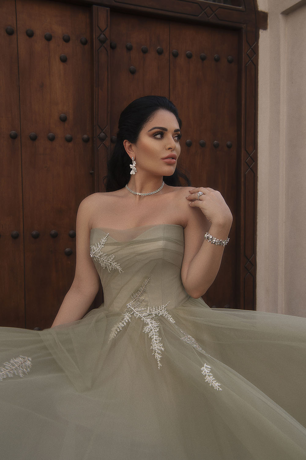 For shooting its 2020 high-end bridal and evening collections, Esposa Prive collaborated with no one but beauty icon Mona Kattan, one of the founding sisters of the billion-dollar cosmetics line Huda Beauty. Designed by Kristie Romanos, the bridal princess gowns signed Esposacouture matched in their royal elegance and luxurious fabrics the sensual silhouette and opulent taste of Kattan. Published in Elle magazine, the photoshoot also featured evening dresses proposed by Esposa Prive Dubai where glittery oriental style blended with graceful cuts and a touch of classic elegance, revisiting night glamour. The final touch was brought by Tiffany & Co, adorning the gowns with matchless masterpieces of diamonds and precious stones, to elevate feminine romance to new heights.