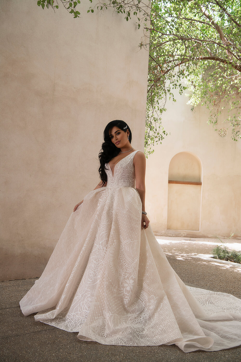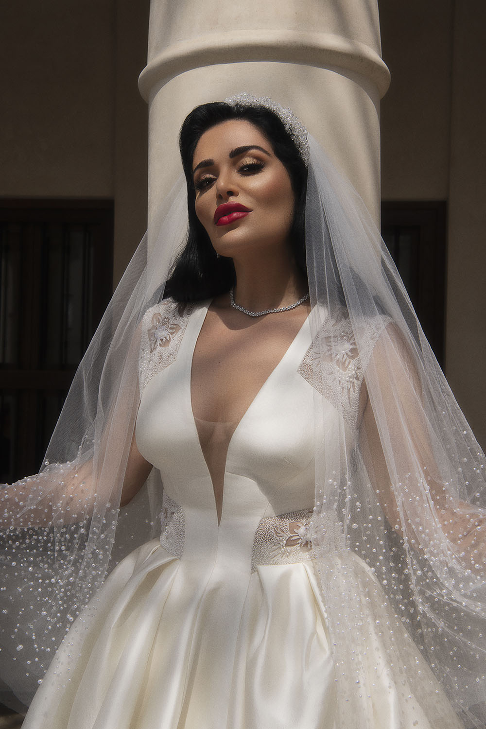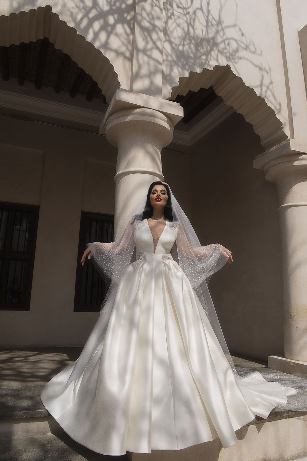 For shooting its 2020 high-end bridal and evening collections, Esposa Prive collaborated with no one but beauty icon Mona Kattan, one of the founding sisters of the billion-dollar cosmetics line Huda Beauty. Designed by Kristie Romanos, the bridal princess gowns signed Esposacouture matched in their royal elegance and luxurious fabrics the sensual silhouette and opulent taste of Kattan. Published in Elle magazine, the photoshoot also featured evening dresses proposed by Esposa Prive Dubai where glittery oriental style blended with graceful cuts and a touch of classic elegance, revisiting night glamour. The final touch was brought by Tiffany & Co, adorning the gowns with matchless masterpieces of diamonds and precious stones, to elevate feminine romance to new heights.